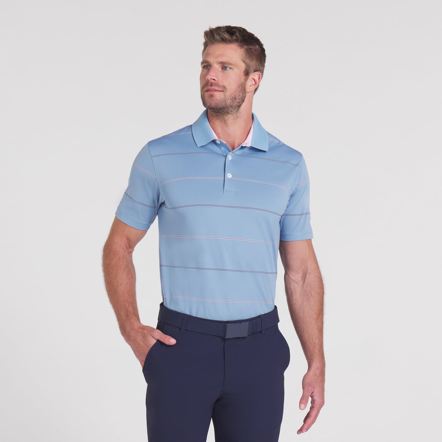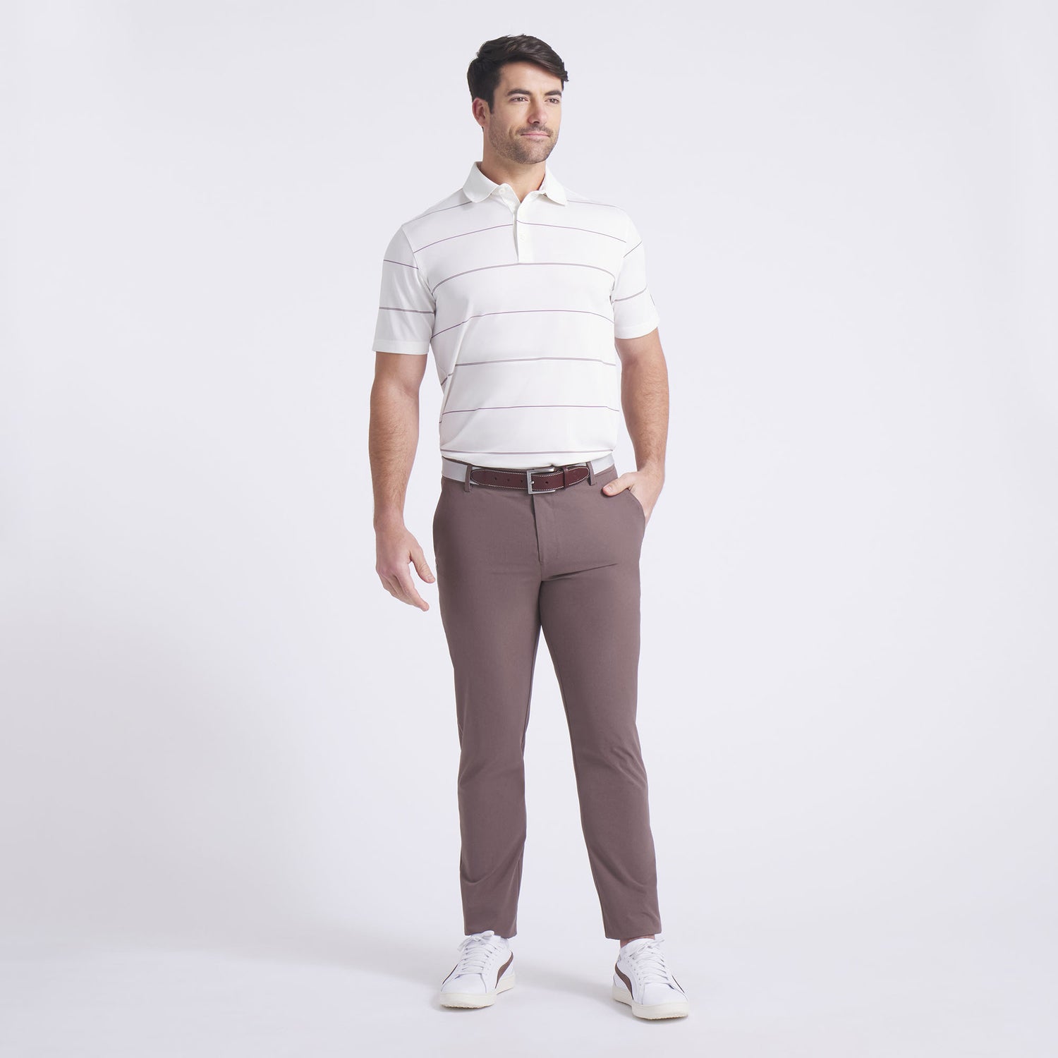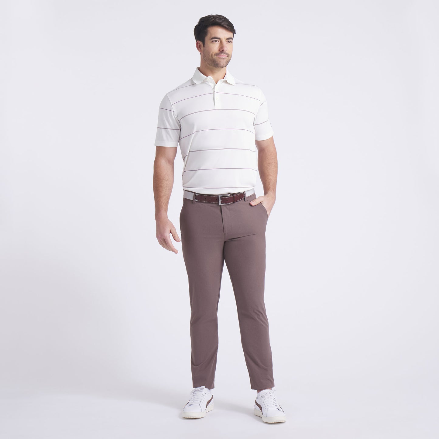 Transport yourself to the era of golf greats in this PUMA x Arnold Palmer polo. Made with at least 90% recycled materials, it features classic rugby stripes and a flat-knit collar built for the performance of legends. Stay cool and comfortable with breathable, moisture-wicking fabric that offers 4-way stretch and a textured feel you’ll love, on and off the course.