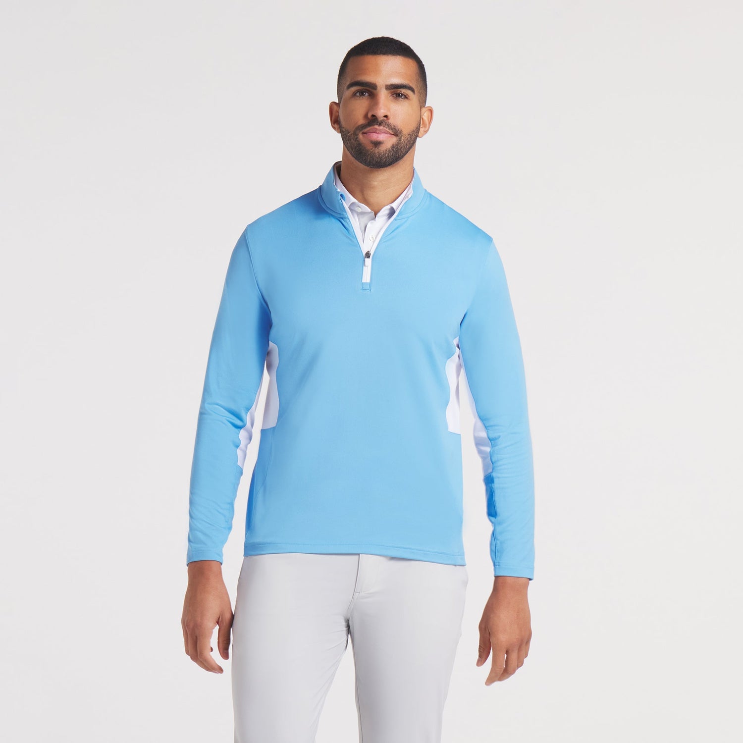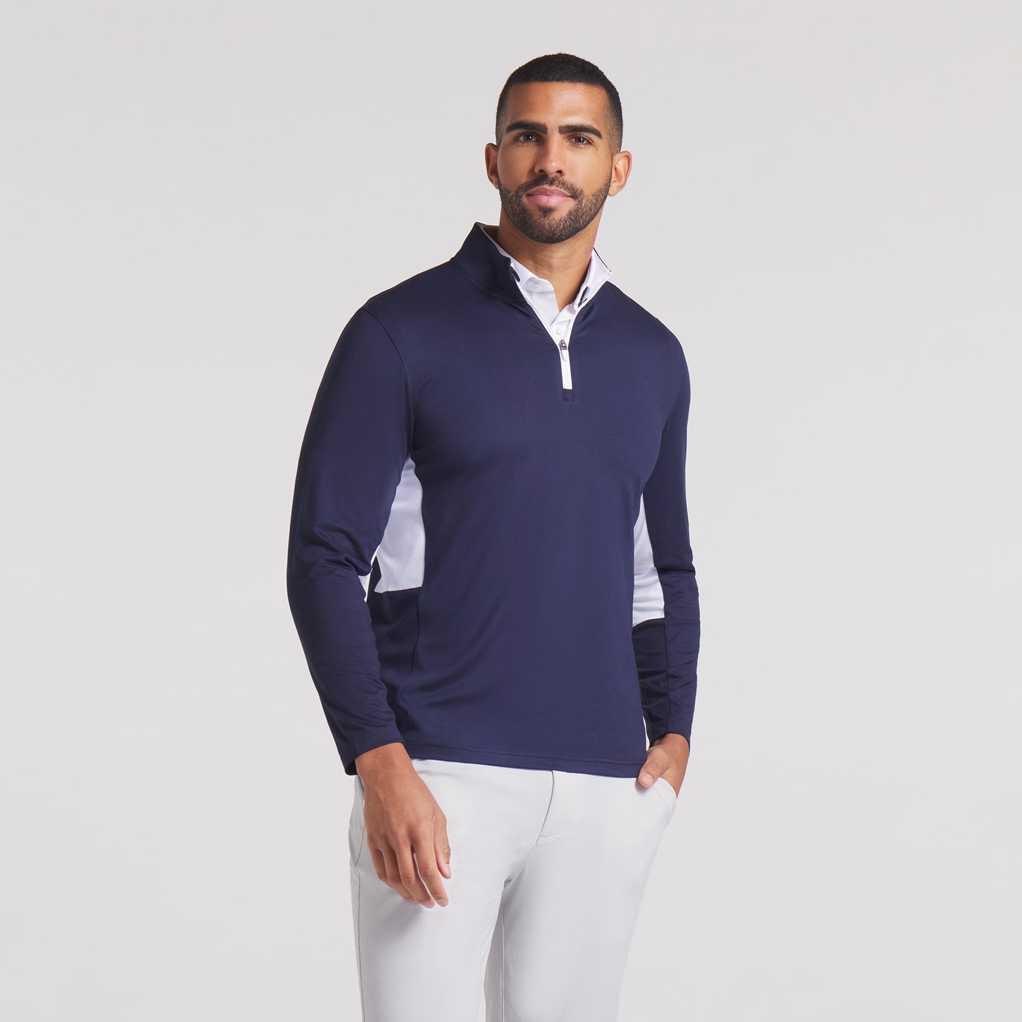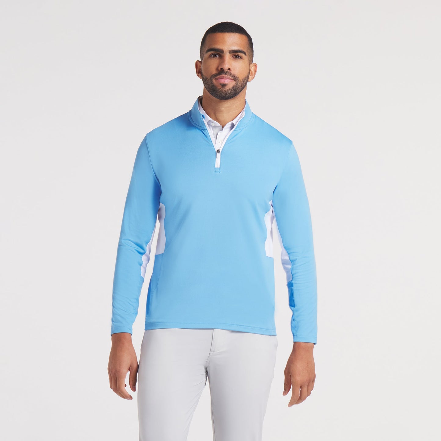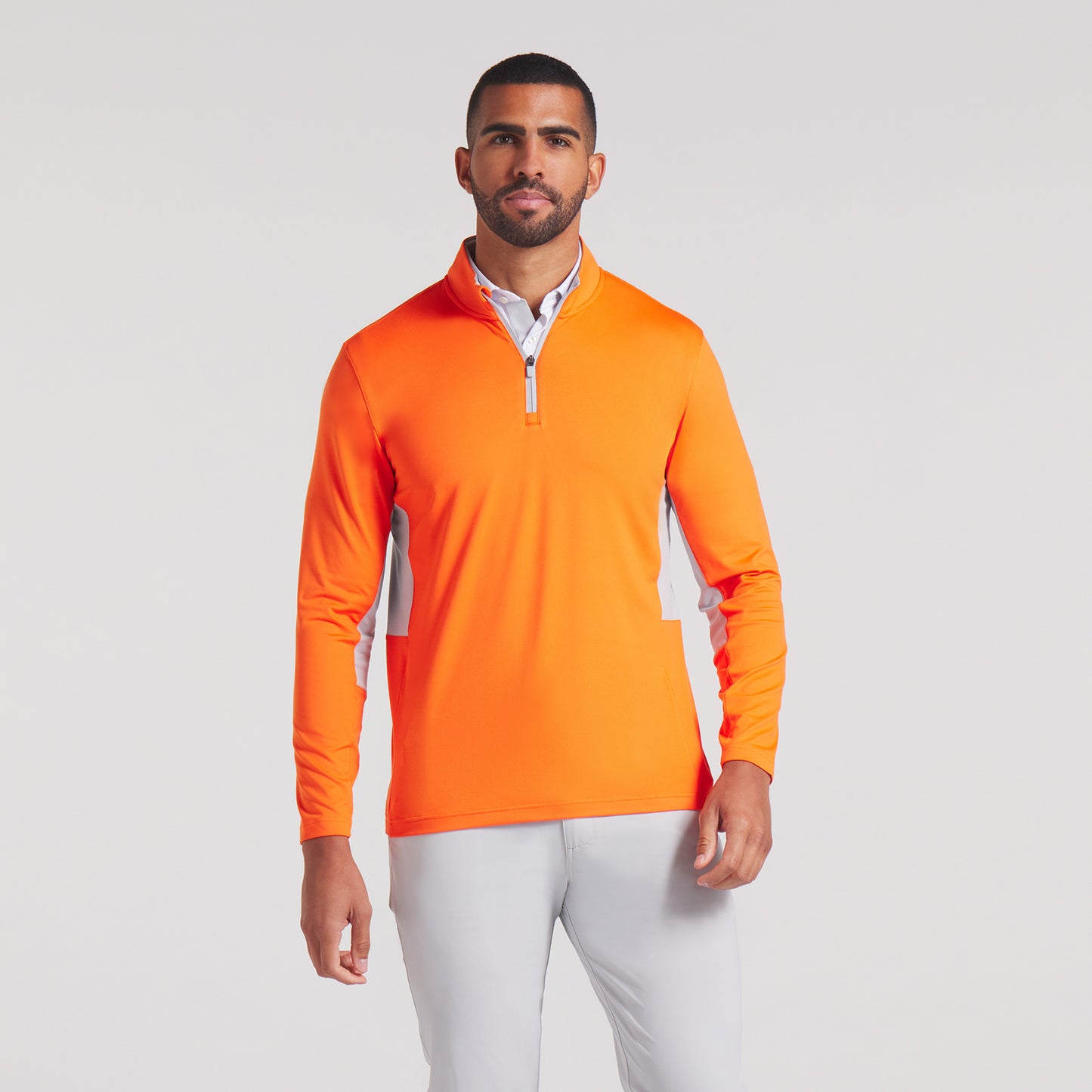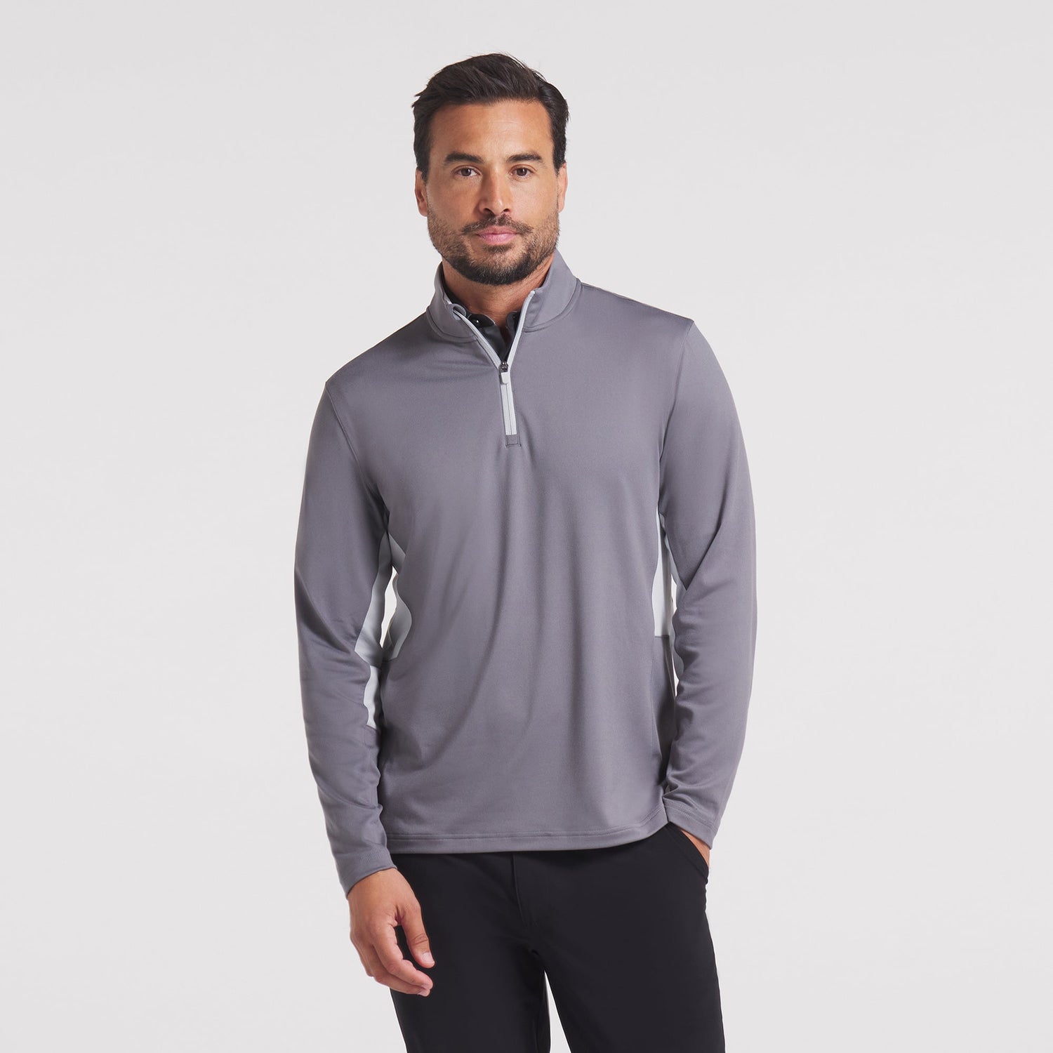Comfort and performance meet in this modern 1/4 zip. Features moisture wicking and 4 way stretch to keep you cool and comfortable all day.
