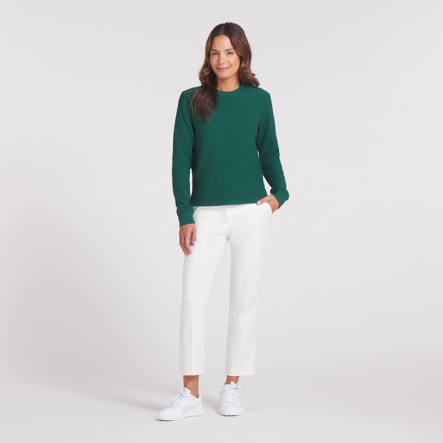 A new addition to our performance layering, this textured layering piece provides 2 way stretch and warmth while maintaining the style and sophistication that you’ve come to expect from Puma.