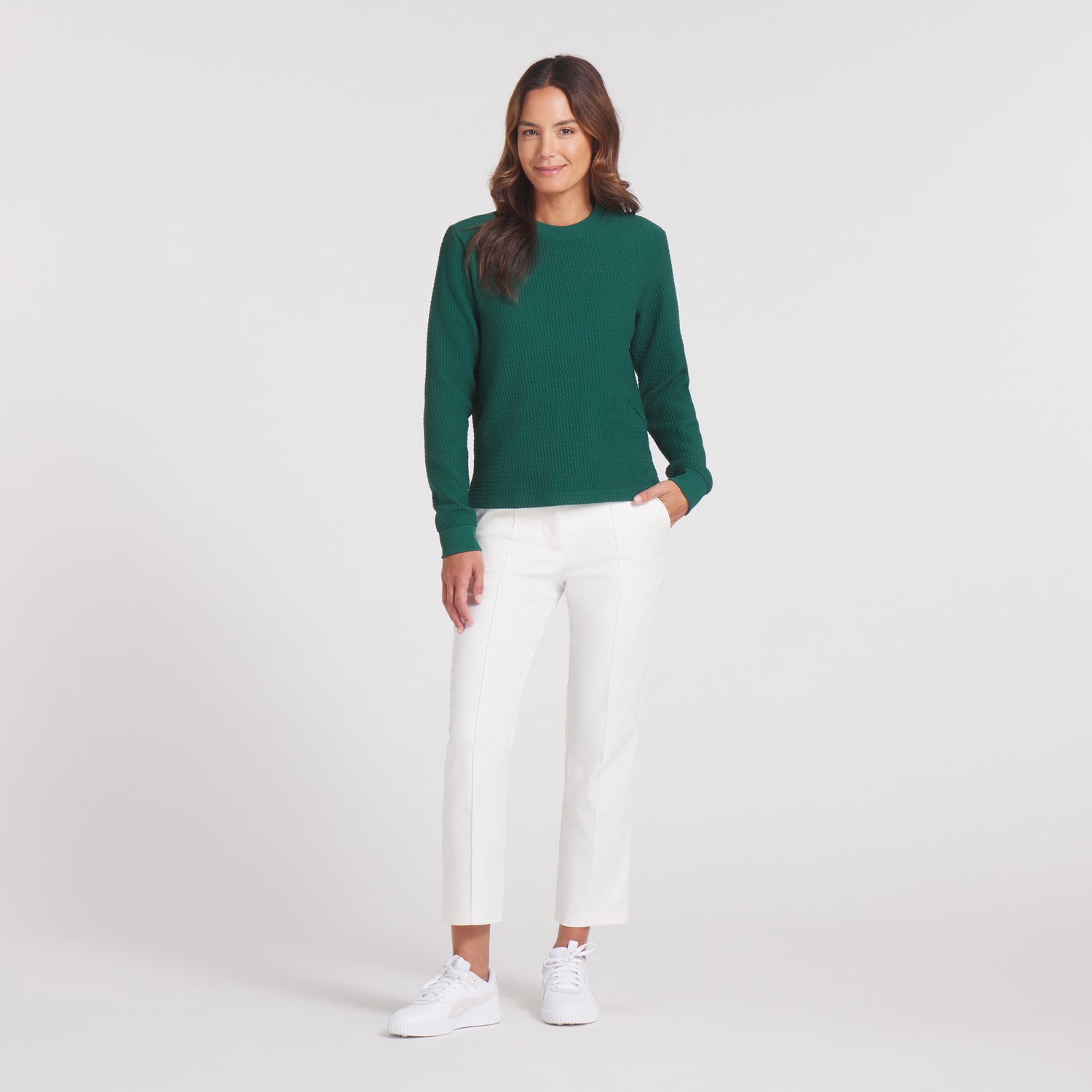 Made with at least 30% recycled materials. A proprietary fabric to PUMA, CLOUDSPUN delivers an ultra-soft feel with four-way stretch, moisture-wicking and all the performance needed to play 18. We promise, that ours feels better than yours.